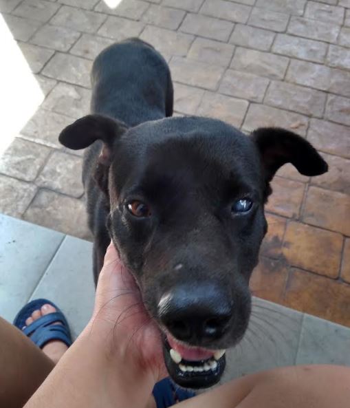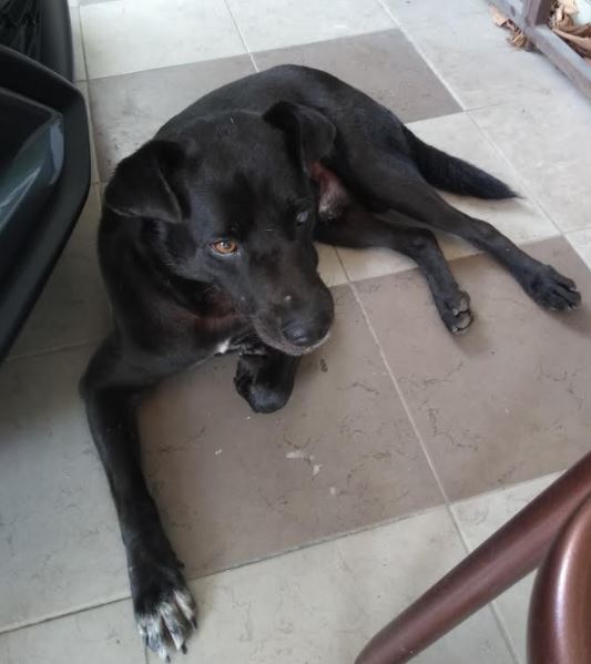 Found this super human friendly male black dog on Saturday(14 Nov) morning during my morning walk with my dog. He wears a faded red cloth collar and has very nice shiny smooth fur coat. His left eye is clouded (not cataract but similar) and might not have vision. But that does not deter him from having fun. He is healthy overall and very sweet natured dog. He can be a very good guard dog as he is alert to any stranger that comes near to the house.