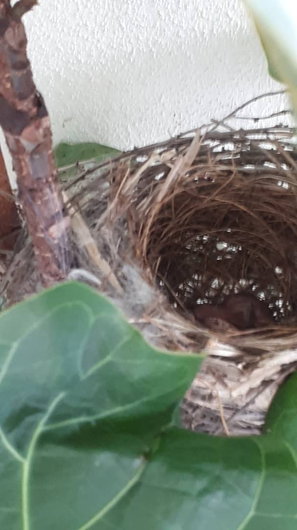 I didn’t dare approach to close, but there’s definitely one little chick in the nest and I think the other egg has not hatched yet.