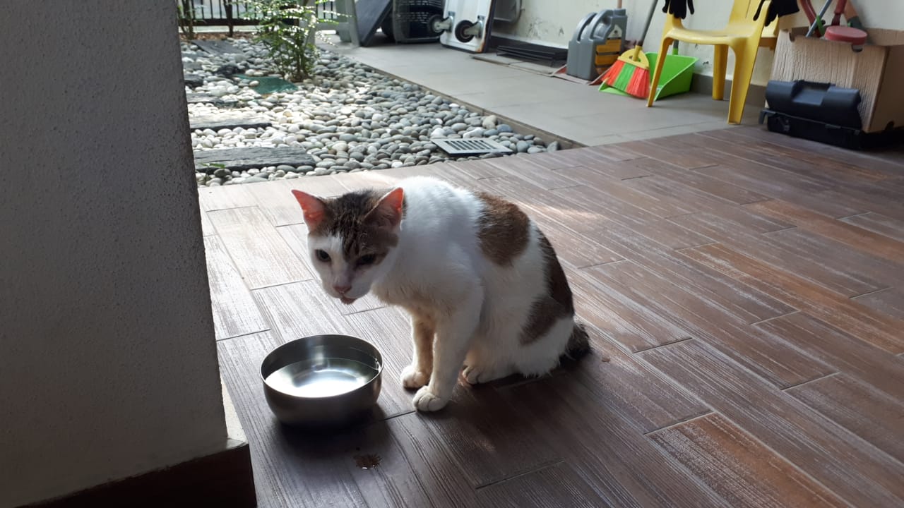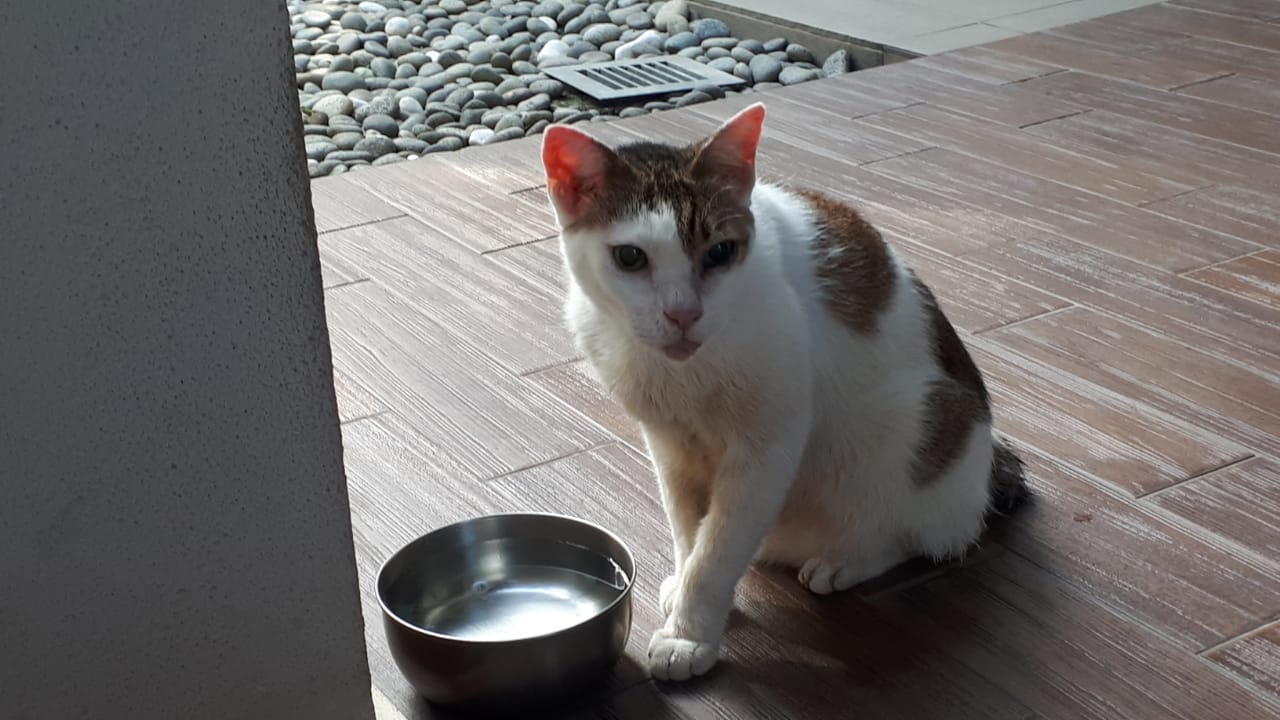 So, that’s two rounds of drinking water. Then, Bunny asked to come out to the patio and he went to the water bowl there and stared at it. Quickly, I changed the water and the miracle happened again.