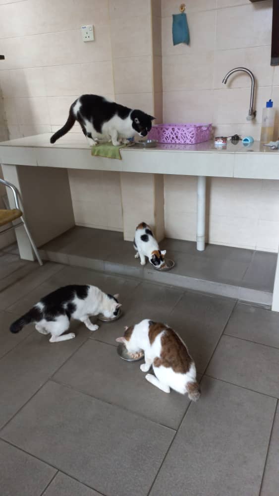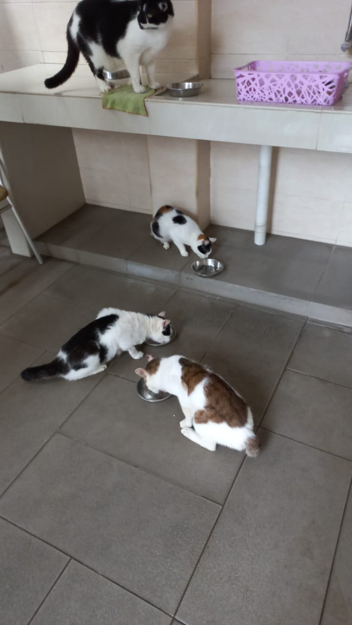 The cats are all fed for now. At least nobody is hungry and no one will go on hunger strike, no one will get gastric pains, I won’t have to take anyone to the vet because of gastric problems. Phew!