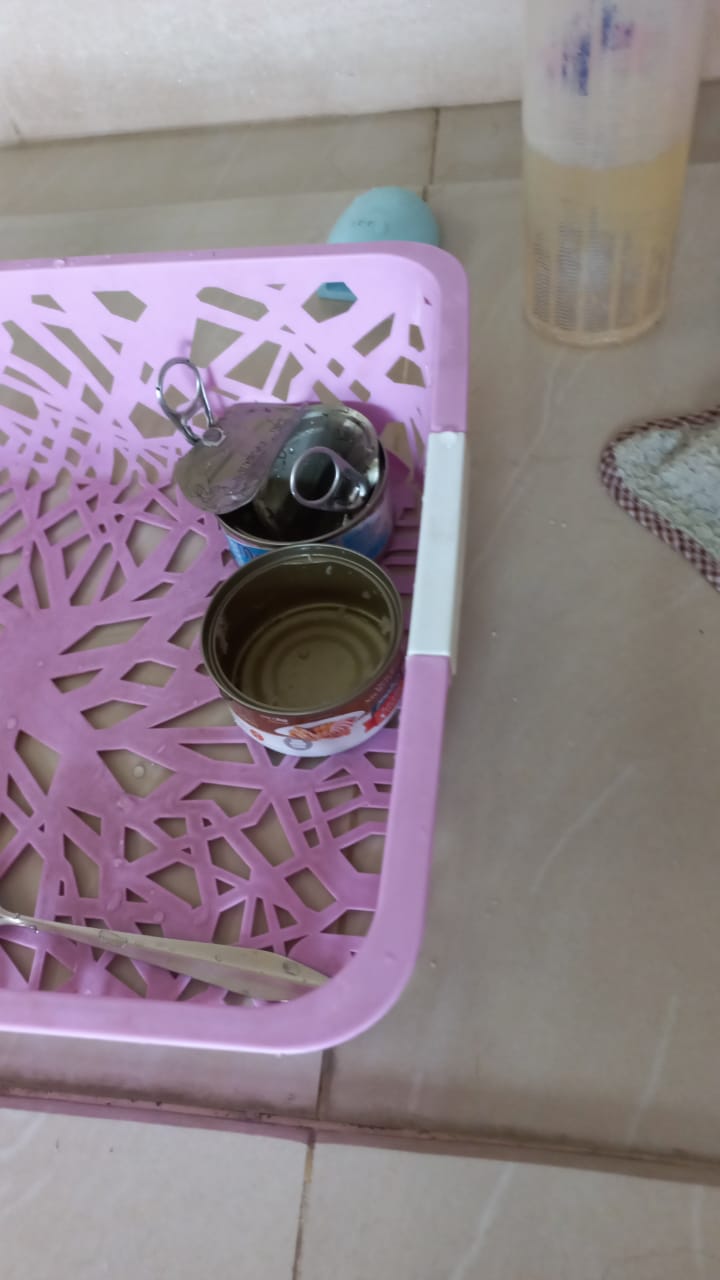 Okay, we finished two cans, shared by four of them. There will be supper later. With Jayden here, the cats have four meals. Supper is to ensure that whoever is still hungry gets enough food before the day ends.