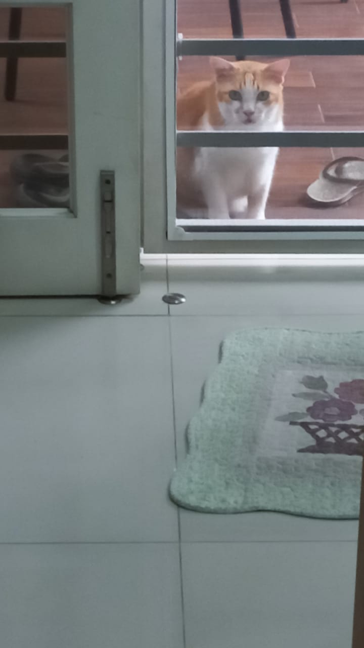 Today, I hoped Jayden can give me enough time to feed all six of the cats.