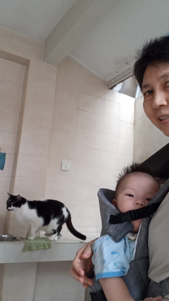 The greatest daily challenge is having to feed our six geriatric and extremely fussy cats while carrying Jayden. I’ve tried to time Jayden to take a nap nearing the cats’ feeding time, but it is often unsuccessful. Jayden sometimes just power naps for 5 mins and that’s that. And when he is up, he wants attention all the time. Otherwise, he screams until he is red in the face.