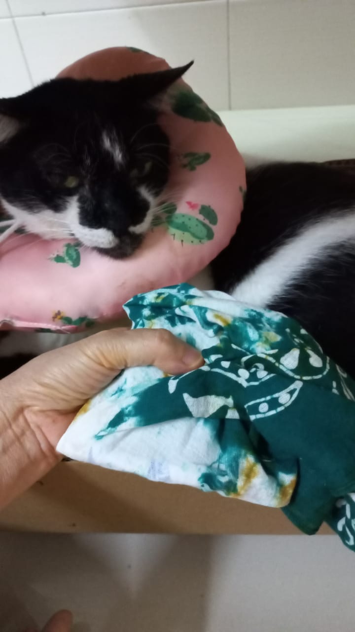 In general, cats have this tendency to not show pain until it’s really unbearable. Why are they so? Well, they are just like that. Dogs, on the other hand, will tell you about their very slightest pain. The vet did remark when she attended to Indy that day, she said the if a dog had such a wound, you will not hear the end of it. Now, that is “good”, because at least you know the poor thing is in pain and you can do something about it.