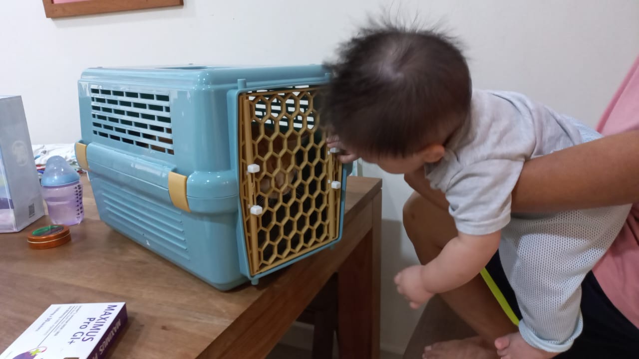 Jayden saying bye-bye to Ginger before we left for the vet’s this morning.
