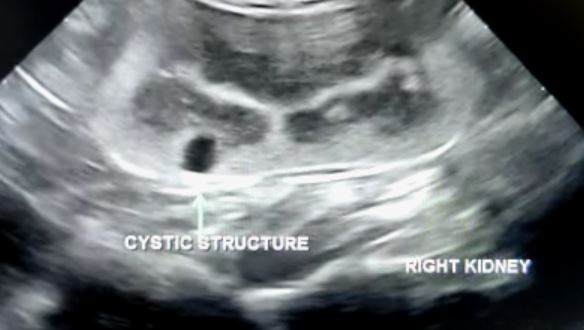 Ginger’s gallbladder is okay. The size of his kidneys are fine too. However, the vet detected a cyst in his right kidney.