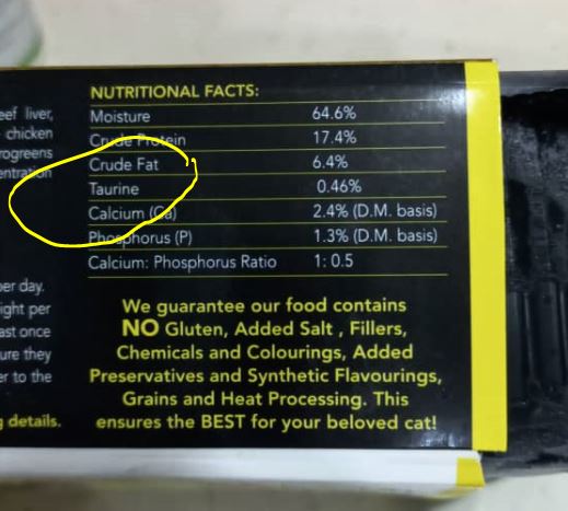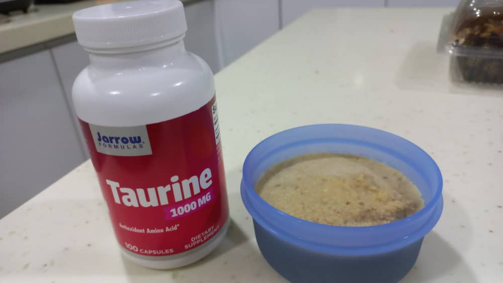 This is the brand of taurine I use in my home prepared cat food for our seniors and super seniors. For 2.6kg of meat, I use 4000mg Taurine (to be added AFTER the food has been cooked because boiling at a high temperature can destroy taurine). But please do check with a pet nutritionist or an authority (of which I am not!) on the correct amount and brand, and correct food preparation techniques.