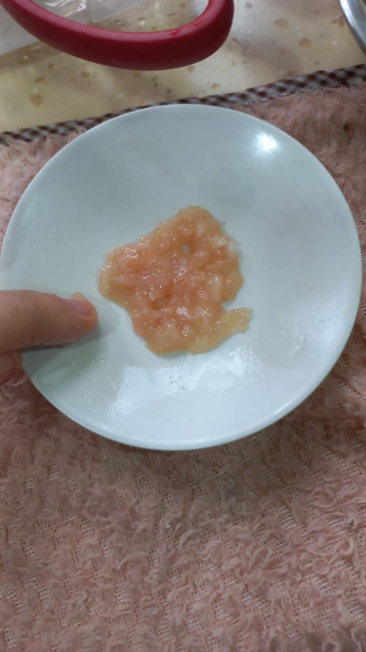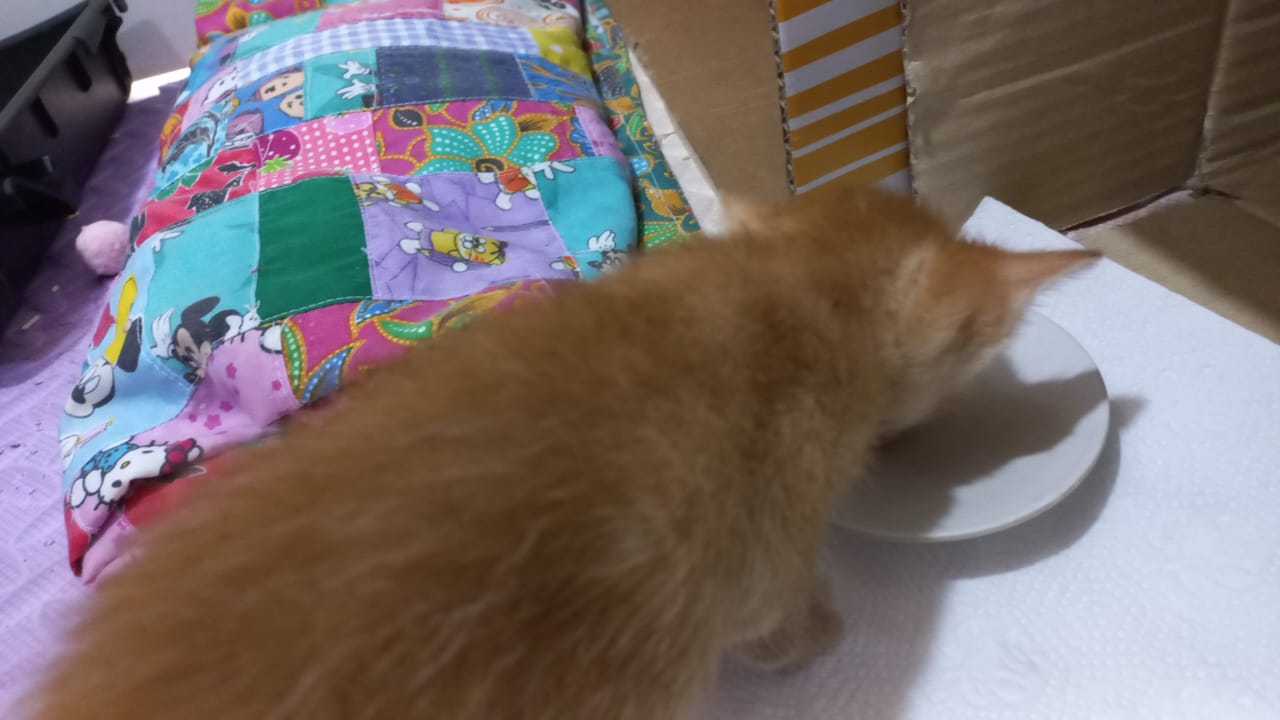 Since yesterday, I had been giving the kittens very small amounts of minced chicken breast meat. I do it by placing the small amount into their mouths. Both Akira and Indra chewed and swallowed, but Kai did not.