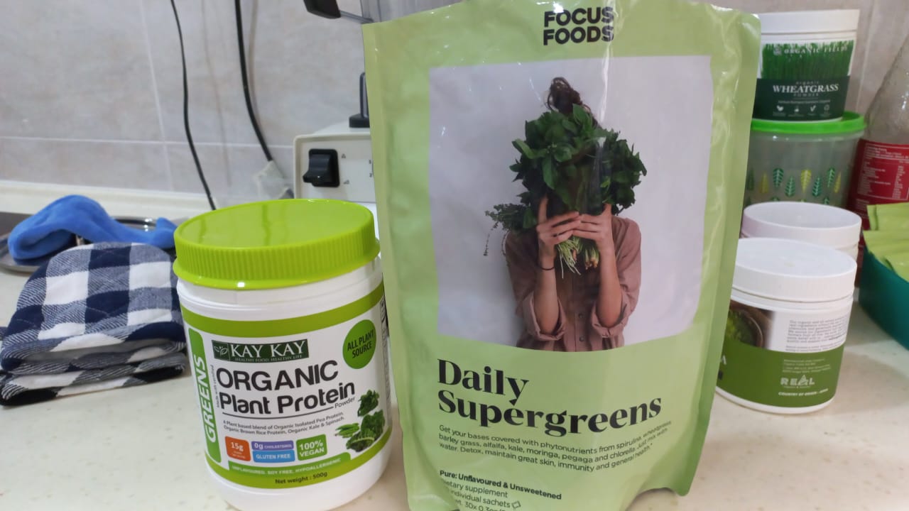 It is Focus Foods’ Daily Supergreens, a supplementary green food I’ve been taking daily for years now. Love it! I added a pea-based plant protein to it. I know it’s the lazy way, but then, I AM a very lazy cook. I wish AI would just invent a nutritionally-complete pill for us to swallow then I don’t have to spend time cooking. I could just swallow a pill and spend more time doing other things!