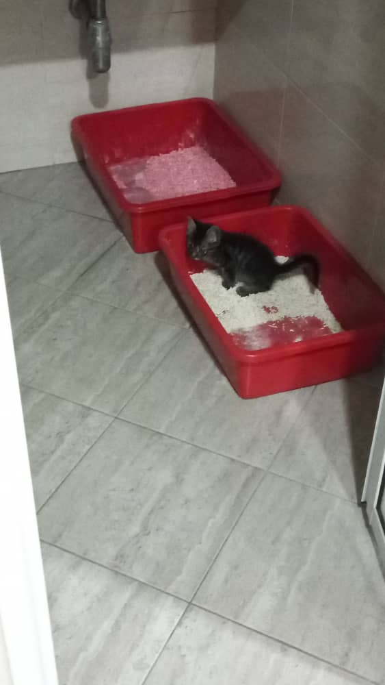Unlike the Princesses upstairs, Little Hiro used the litter box right from Day One. When he first came, I did not even have a litter box for him and was just using an aluminium baking pan. He used that.