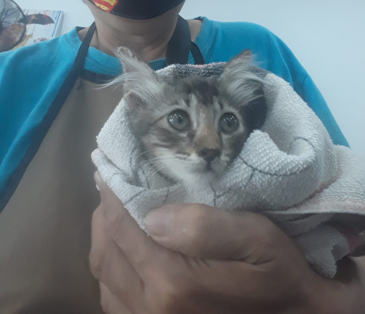 Fate is the newly-rescued kitten that Ms Ong and her friend picked up from the roadside on their way into the shelter this morning. Fate has flu and mange in both ears. The clinic has a policy of not boarding animals with skin infections, so Fate is currently being fostered by the friend while Ms Ong is at her burger stall. Arrangements will be made either for another fosterer or Ms Ong will take over Fate herself when she finishes work at 2am tomorrow morning. Fate was given an injection and flu medication.