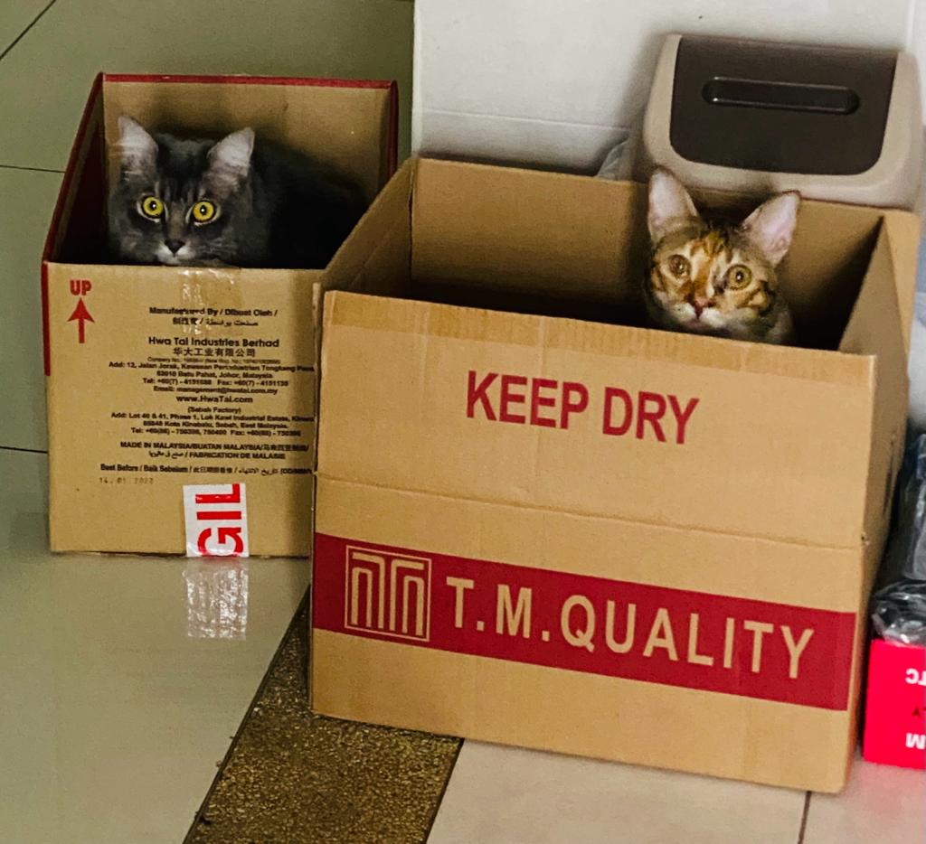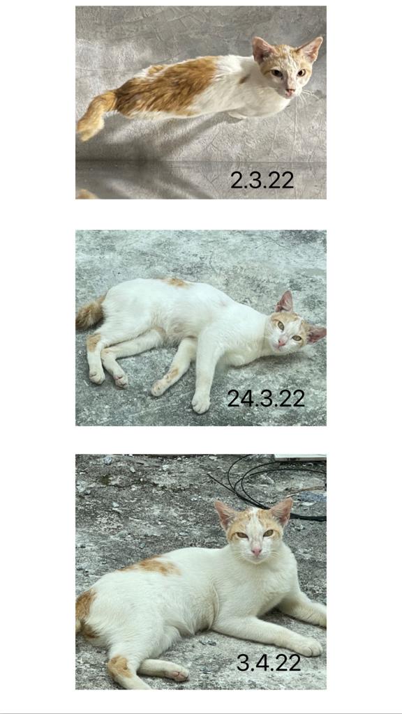 However, I would like to share that I am a cat person too with 2 female cats (MeMe, who was rescued from the roadside in 2020 and MeiMei, who was given to us by a friend when she was just a palm-sized kitten) staying inside my house, one male cat (MongMong, who came to the backlane of my house in 2022) now staying at the back lane and another female cat (BoBa, who came into my car porch in 2023) staying at my car porch with my dog. But why do I call myself a cat grandma? It’s because my daughter was the cat mummy, so I have to be the cat grandma….?