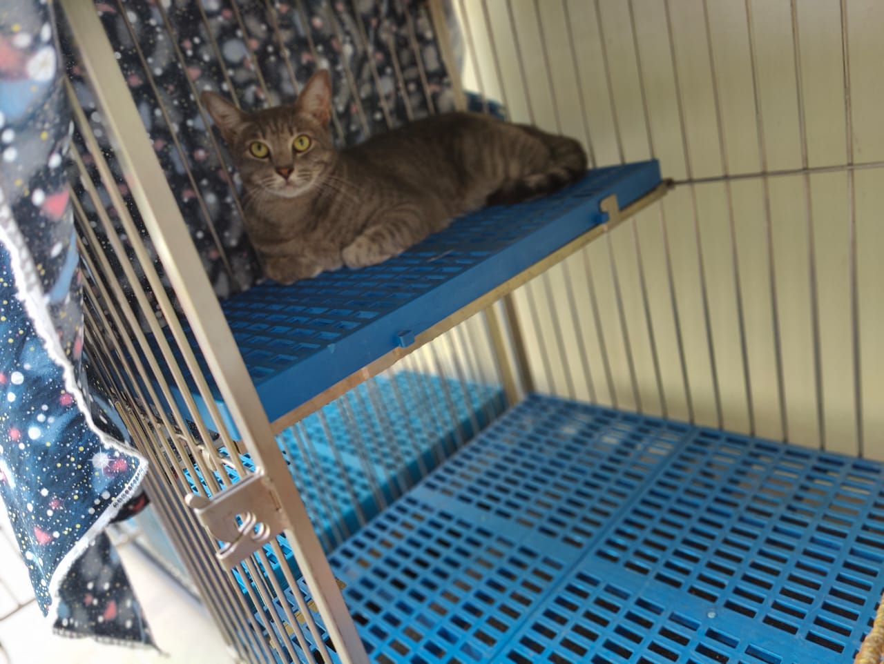 Tabs was afraid too, but not panicky. Since there were workmen coming in and out of the house, I also kept her in Bunny’s Place.