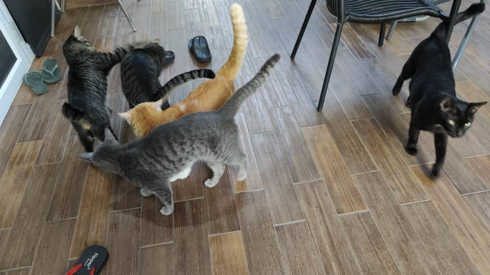 The reasons for the house call are (1) They are all so big and strong, I don’t think I can carry five carriers one by one from the parking bay to the clinic! and (2) They are so strong and not used to going anywhere, I’m so scared they would break out of the carrier while I’m transporting them from my car to the clinic and that would be a total nightmare.
