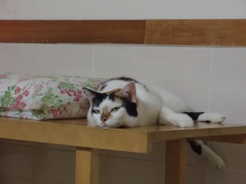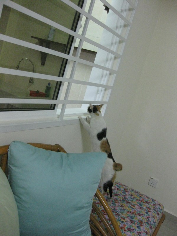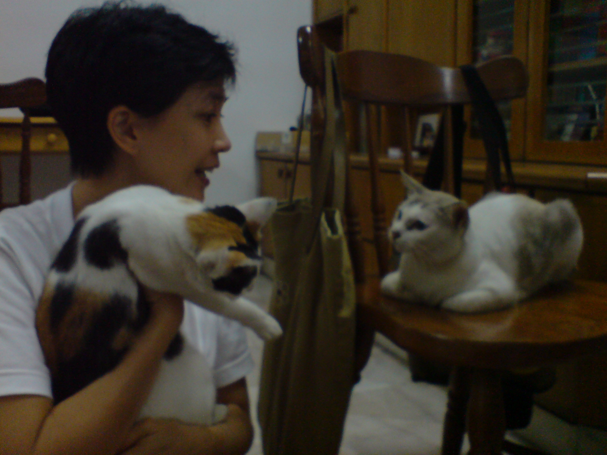 The above two photos are particularly memorable. I had stupidly taken Cleo to the vet’s without a carrier, thinking I could carry her in. Cleo, out of fright, jumped off from my arms and went missing for many hours. We launched a search together with the vet assistants. A friend who had some reiki abilities also came to help. But we could not find Cleo. It was only when my husband came back from work and he came to help search that we found Cleo. She had been hiding in a wooden crate just next to the clinic.