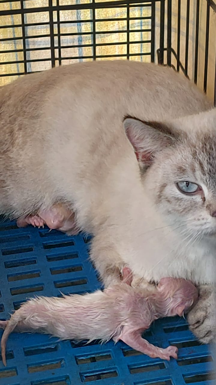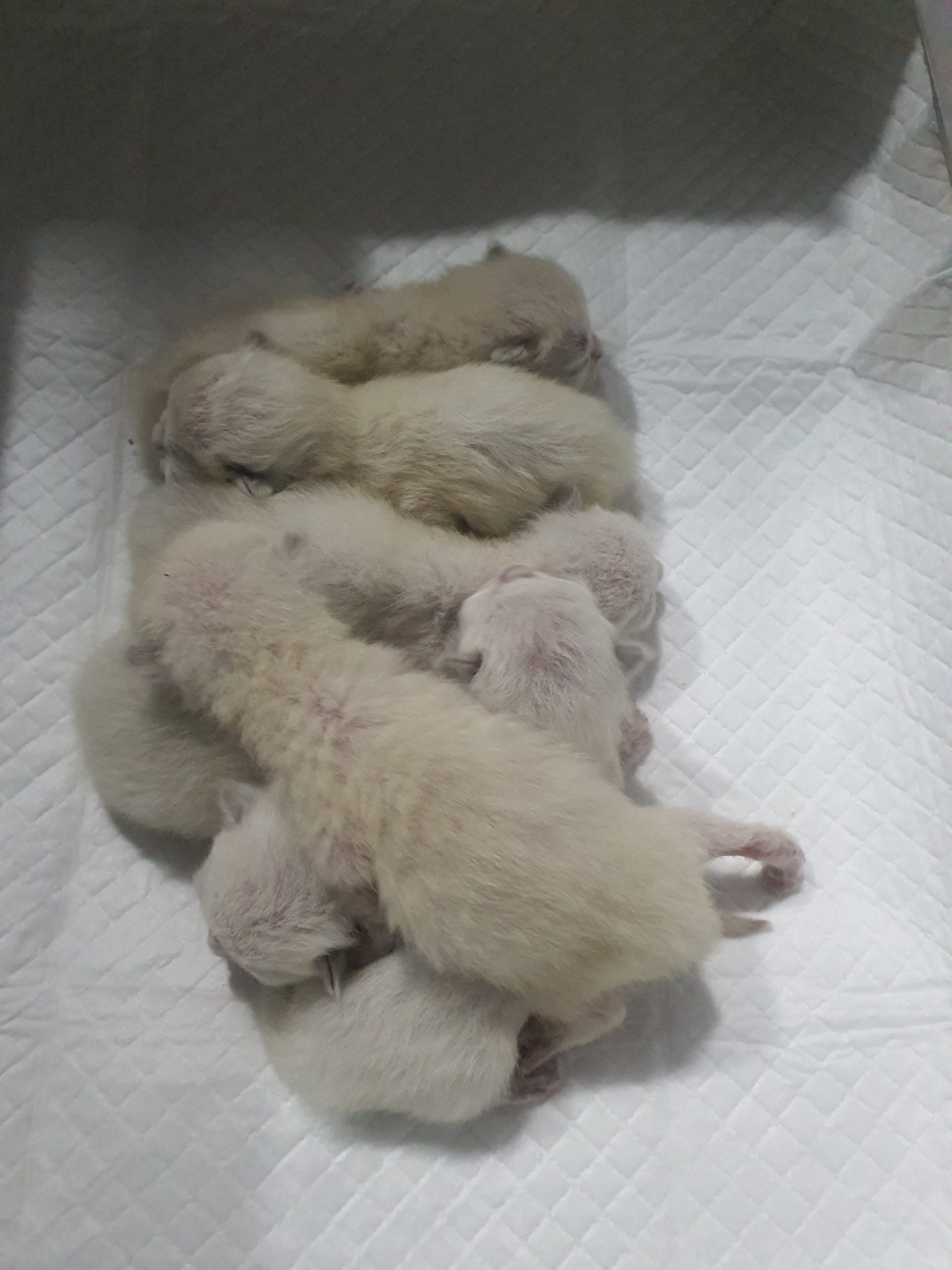 On Thursday, 9th Nov 2023, she gave birth. First we thought she only had 2 babies. Then the next morning, we counted 4 or 5 (we could not see clearly and did not want to disturb the mama) and at night, as I cleaned her maternity ward to put fresh wee wee pads, there were 6 cotton balls of fur!!!
