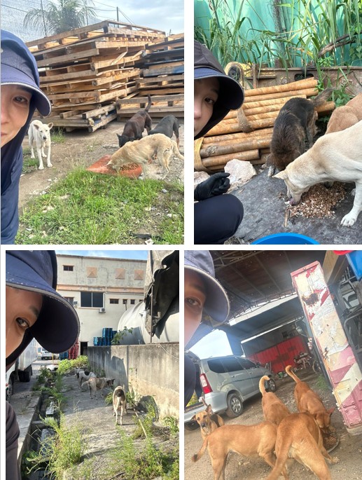 Tong Yut Fun (JoTong) and Wong Woi Kan feed about 165 street dogs in the Balakong area. Every dog that they can catch is neutered, most of them returned to colony (unless the dog has special needs) and managed for life with dedication and commitment. The younger puppies are rehomed, adult dogs with special needs are either rehomed or relocated to spaces which are safer for them and sick dogs are given medical treatment. Collectively, they have got 75 dogs neutered on their own previously and under our aid, 187 animals (mostly dogs and a few cats). They continue to get street dogs vaccinated and neutered now, sometimes sponsored by friends.