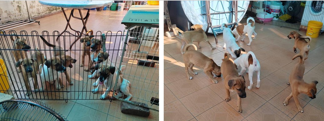 The 9 puppies are being fostered and below are two photos of them at the fosterer’s home. They have also been given their second vaccinations. These puppies were abandoned as newborns along with their mother and other dogs at one of the feeding sites.