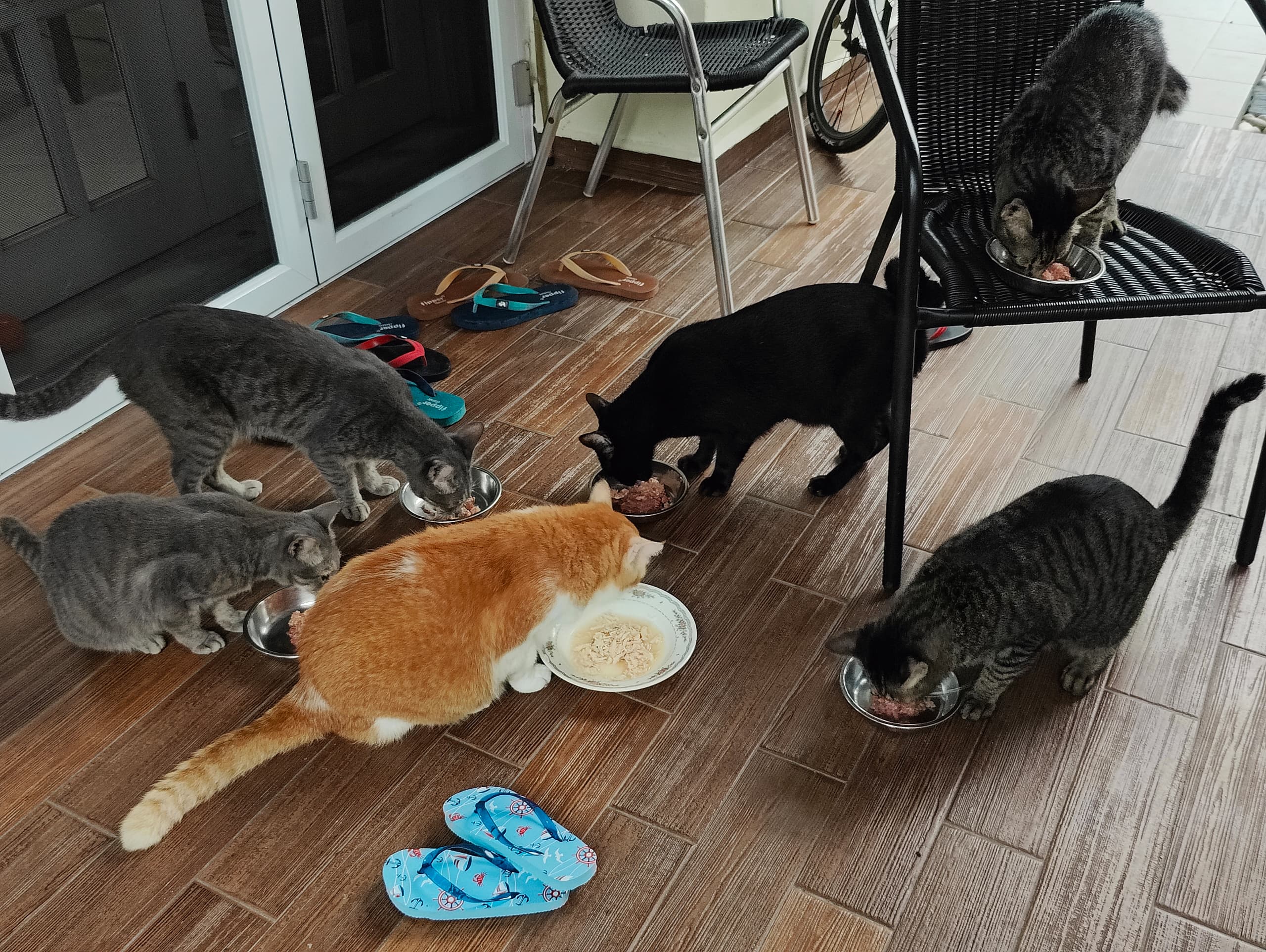 When we moved to this neighbourhood, we started feeding them too. One day, Ginger was attacked by the neighbourhood terrorist-cat, Mr Quack. The feeder informed me about a “paw wound” but he could not catch Ginger. Then, a few nights after that, Ginger came on his own into our catio and sat inside our cage. He needed help.