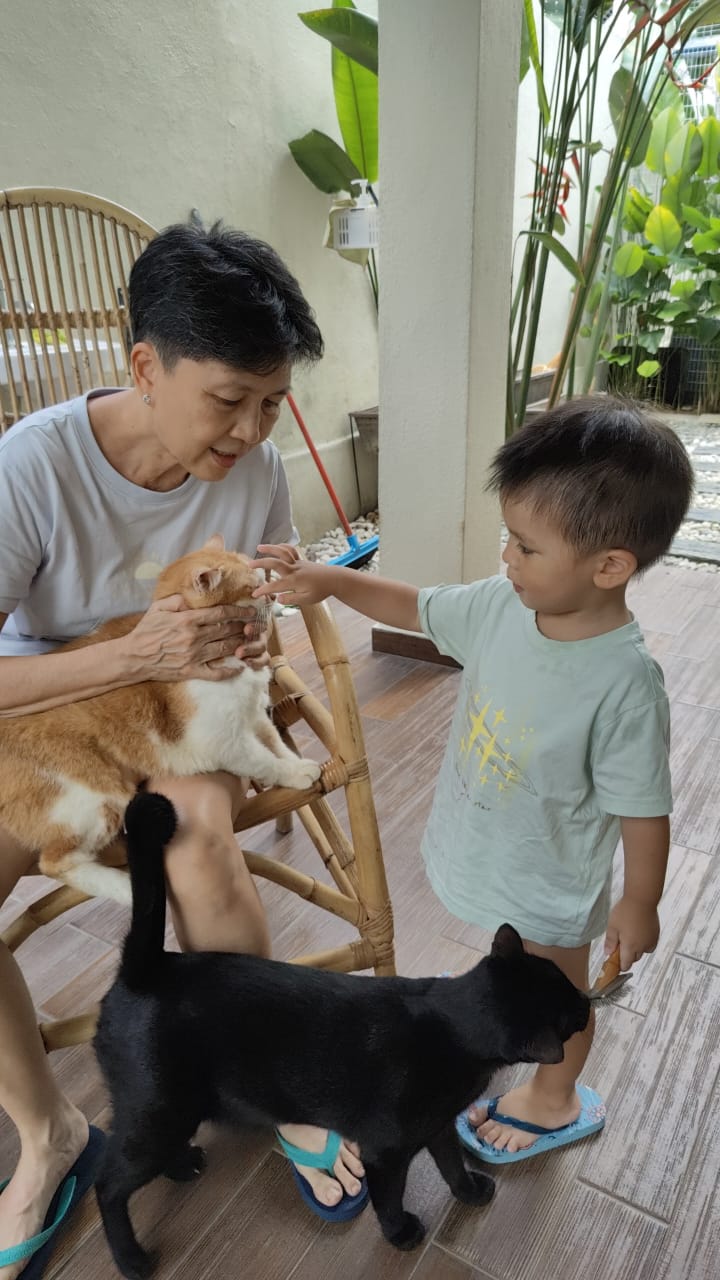 From then on, Daffodil and Rosie also came to live with us. That was how Ginger got his whole family adopted!