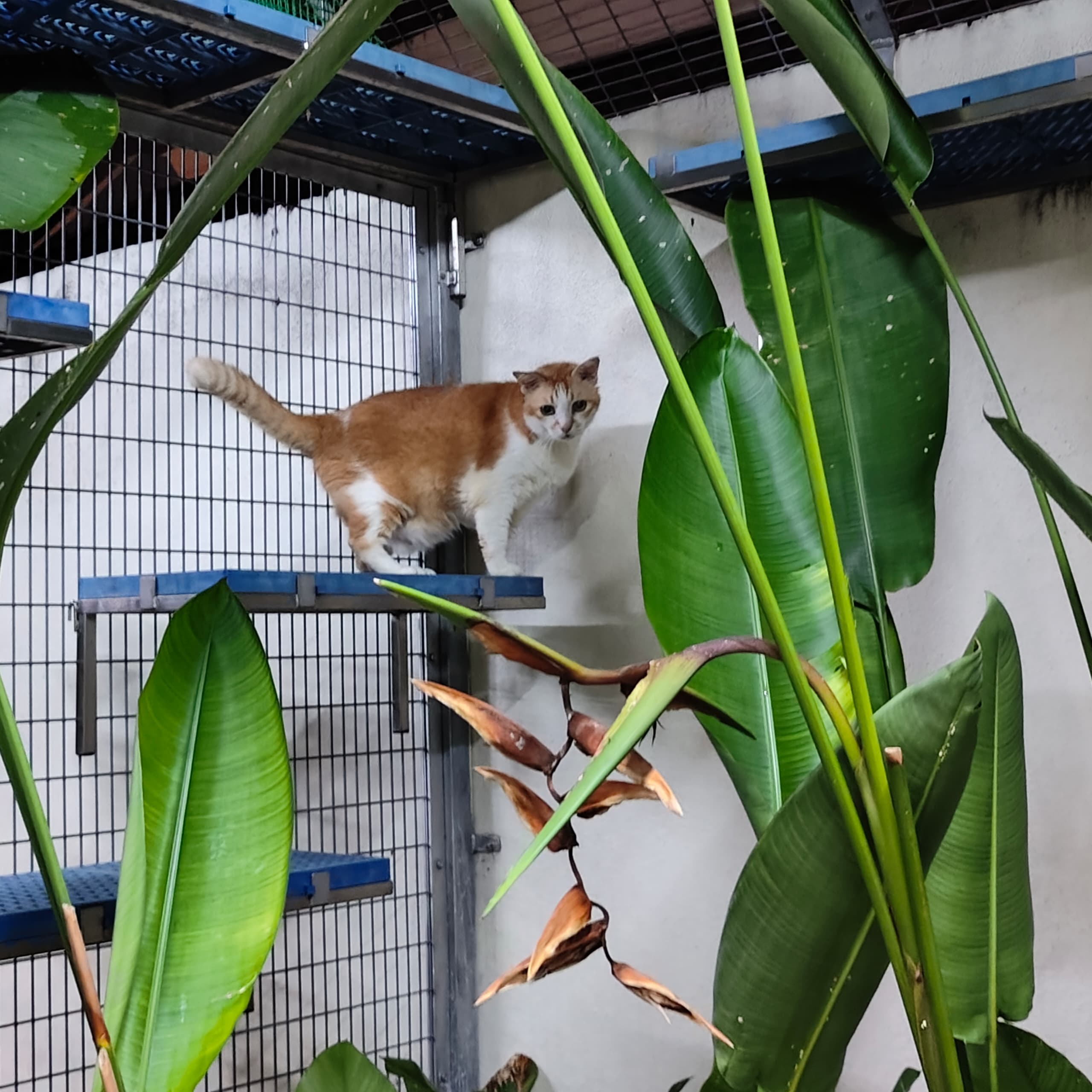 The vet always said Ginger was obese and needed to lose weight. Well, as obese as he was, he was super agile on the platforms and had no problems at all, jumping up and down and across, at the same speed as the Monsters too! His favourite spot on the platforms was on the highest one – at the top of the world.
