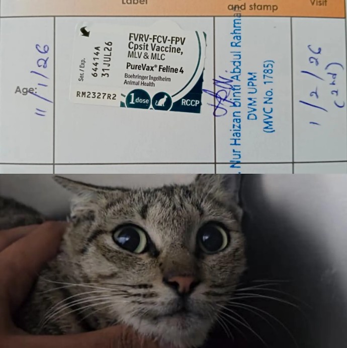 We have provided an aid of RM30 for the vaccination of this female cat, Tina.