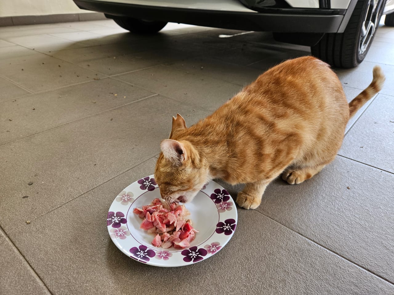 But Gerald NEVER misses a single meal at our porch! It took me quite awhile to retrain him to eat twice a day instead of thrice. He is so persistent in his habits, so that was certainly a challenge.